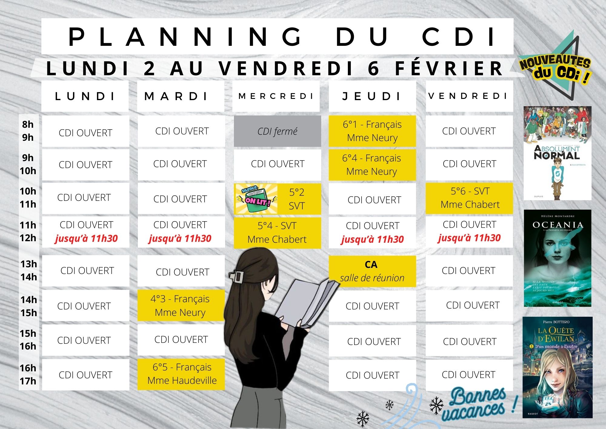📖 Voici le planning du CDI pour la semaine du lundi 2 au vendredi 6 février 2026 📌