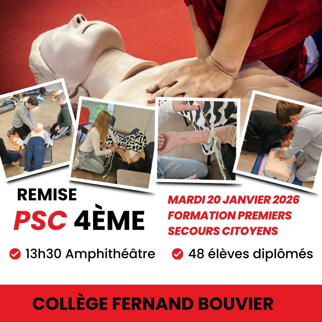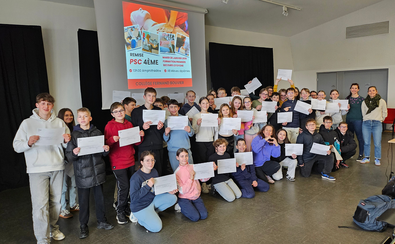 Les élèves de 4èmes ayant réussis leur formation PSC (Premier Secours Citoyen) ont reçu leur diplôme mardi 20 janvier !