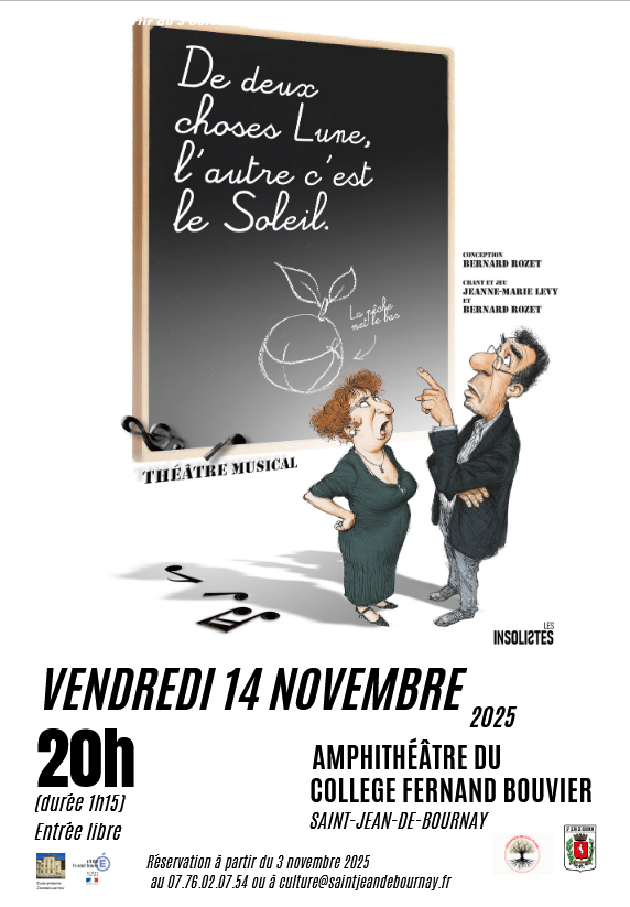 Spectacle musical à l'amphithéâtre du collège Fernand Bouvier de Saint Jean de Bournay - réservation à partir du 3 novembre - entrée libre.