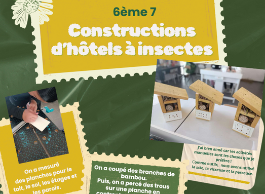 Les 6èmes ont pu construire différents abris pour la biodiversité (nichoirs, hôtels à insectes...), en partenariat avec l'association Milles Nature dans le cadre du projet "En chemin vers les ENS".