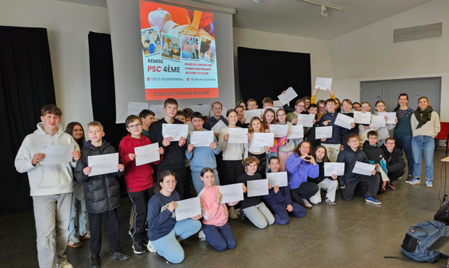 Les élèves de 4èmes ayant réussis leur formation PSC (Premier Secours Citoyen) ont reçu leur diplôme mardi 20 janvier !